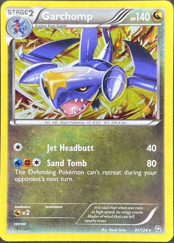 This card is 1 of 6 Garchomp's card variations in the 2012 Black & White: Dragons Exalted set being tracked by Sports Card Investor, including #091/124 Base, #090/124 Holo, #090/124 Reverse Holo, #091/124 Reverse Holo, and #091/124 Promo (Cracked Ice).