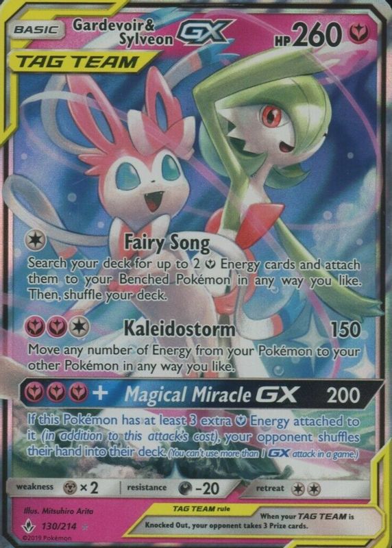 Gardevoir & Sylveon GX's Pokemon cards are available in at least 1 sets. Gardevoir & Sylveon GX's biggest 7-day price movers are 2019 Sun & Moon: Unbroken Bonds #205/214 Holo (Alternate Full Art), 2019 Sun & Moon: Unbroken Bonds #204/214 Holo (Full Art), and 2019 Sun & Moon: Unbroken Bonds #225/214 Holo (Secret).