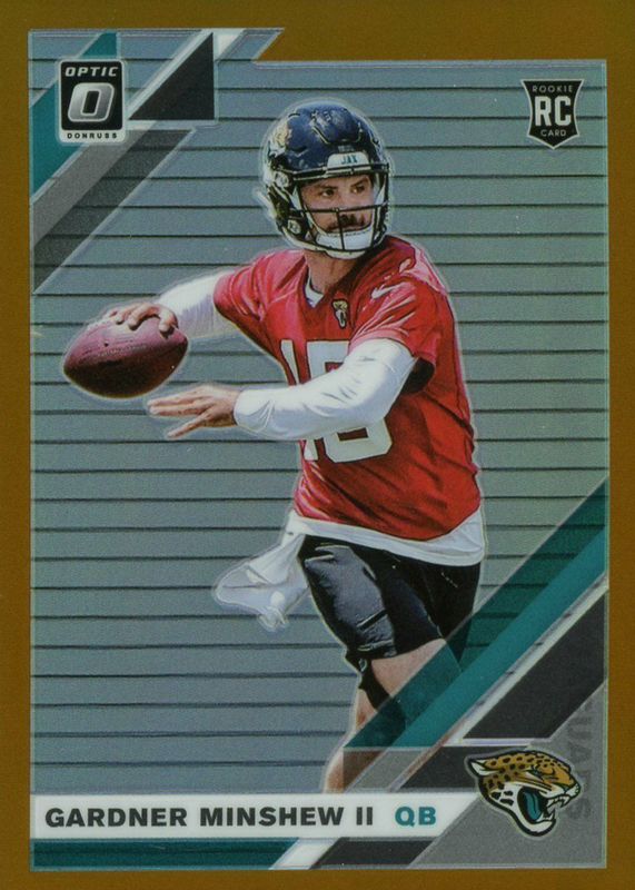 The Gardner Minshew II 2019 Optic #142 Bronze Rookie card in Raw condition has not changed in price in the last 30 days and was last sold for $15.50 .