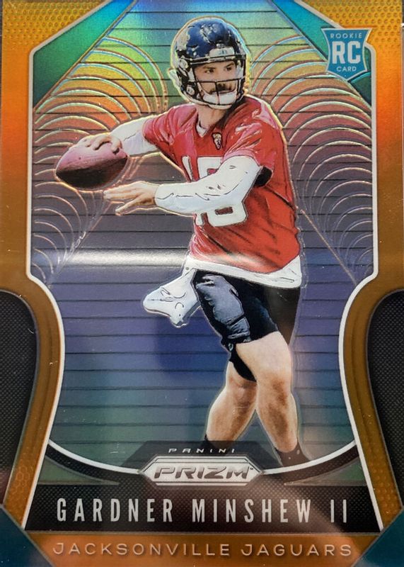 The Gardner Minshew II 2019 Prizm #322 Orange /249 Rookie card in Raw condition has moved down -$2.01 (-67.0%) in the last 30 days and was last sold for $0.99 .