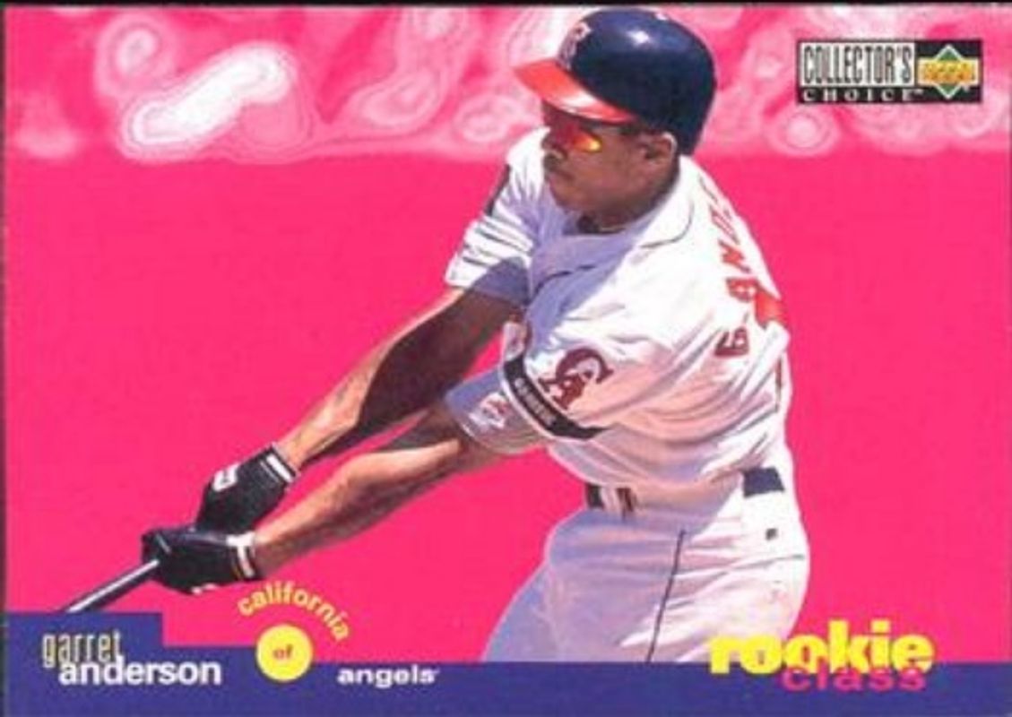 The Garret Anderson 1995 Upper Deck Collector's Choice #23 Base Rookie card is 1 of 3 Garret Anderson's card variations in the 1995 Upper Deck Collector's Choice set being tracked by Sports Card Investor, including Gold Signatures, and Silver Signatures.
