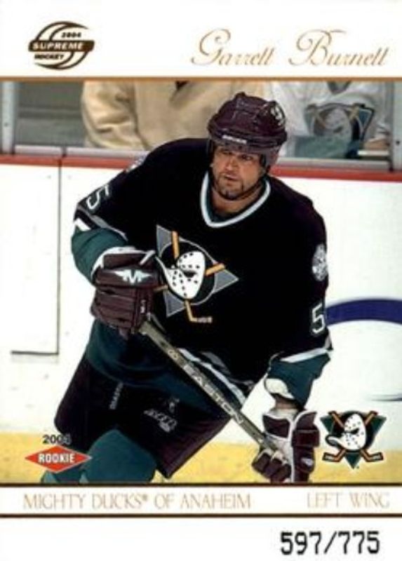 The Garrett Burnett 2003 Pacific Supreme #101 Base /775 Rookie card is 1 of 4 Garrett Burnett's card variations in the 2003 Pacific Supreme set being tracked by Sports Card Investor, including Retail, Red /425, and Blue /250.