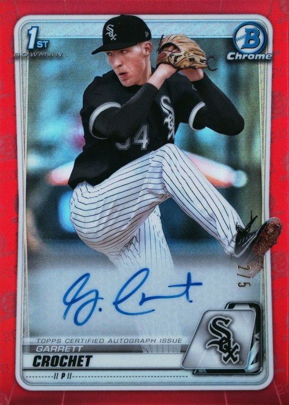 Auctions Ending Soon for Garrett Crochet 2020 Bowman Draft #CDA-GC Chrome DP Auto - Red Refractor /5 (1st) RAW