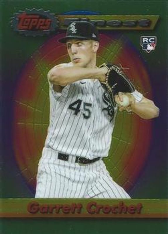 The Garrett Crochet 2021 Topps Finest Flashbacks #59 Base Rookie card is 1 of 6 Garrett Crochet's card variations in the 2021 Topps Finest Flashbacks set being tracked by Sports Card Investor, including Refractor, Prism Refractor /35, Black Refractor /25, Red Refractor /5, and Superfractor /1.