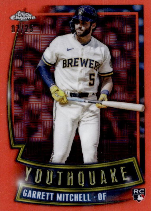 2023 Topps Chrome Garrett Mitchell Youthquake Orange RC #05/25 Jersey # Match