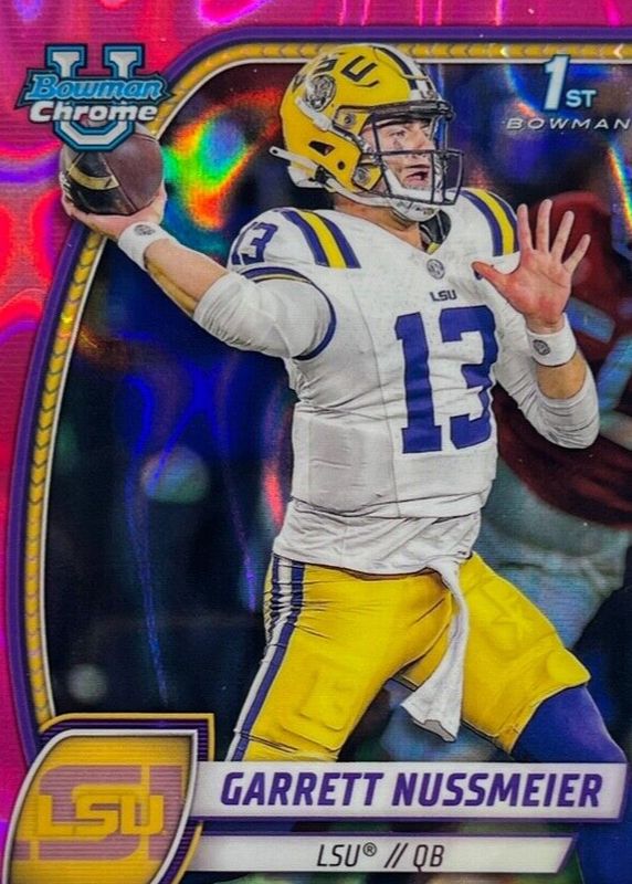 2024 Bowman Chrome University Garrett Nussmeier Pink Lava Refractor 1st LSU