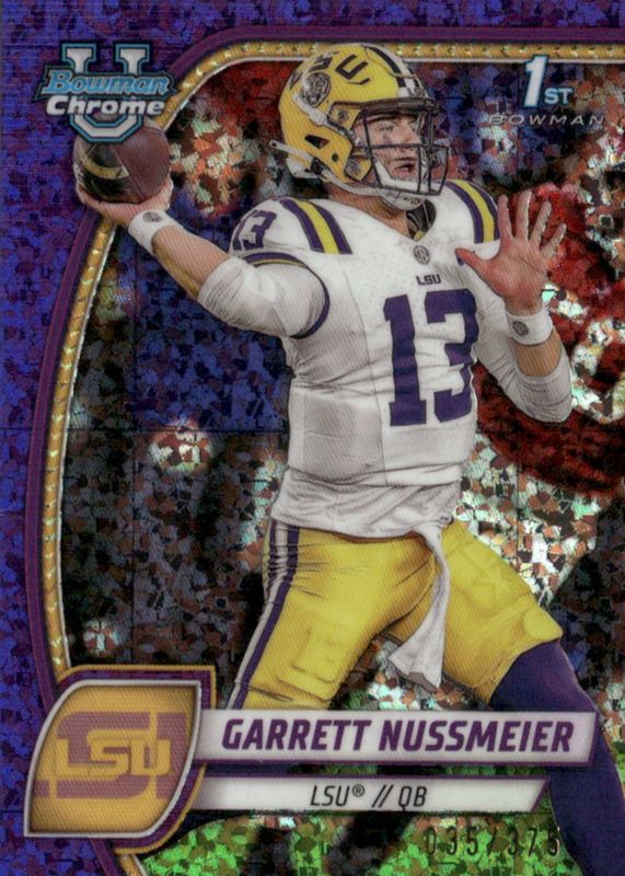 2024 Bowman Chrome U 1st Garrett Nussmeier /375 Purple Mini-Diamond #5 LSU