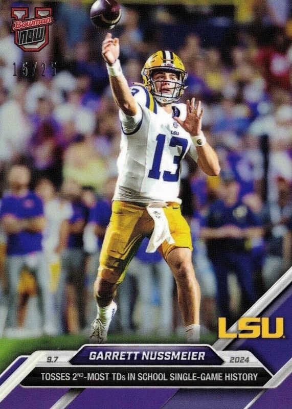 Garrett Nussmeier 2024 Bowman U Now #11 Purple /25 BGS 10 PRISTINE Price Guide