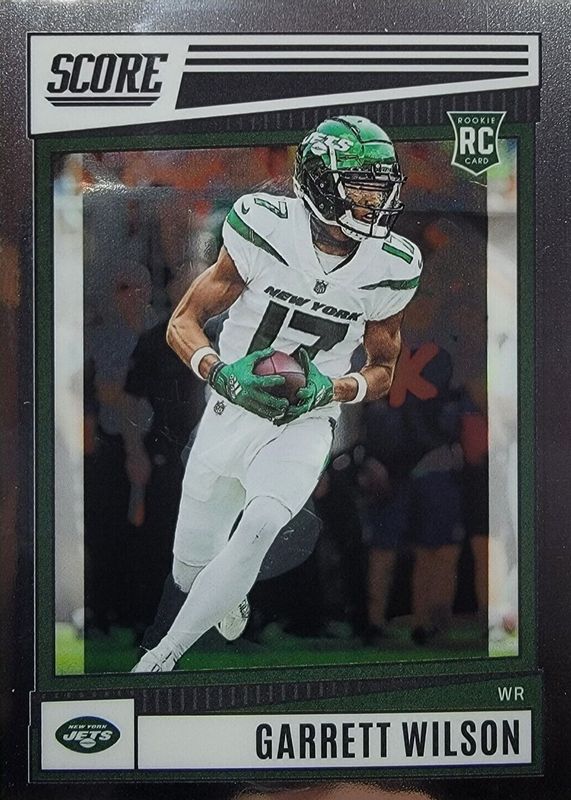 The Garrett Wilson 2022 Chronicles #SP-306 Score Premium Update Rookie card in Raw condition has not changed in price in the last 30 days and was last sold for $1.79 .