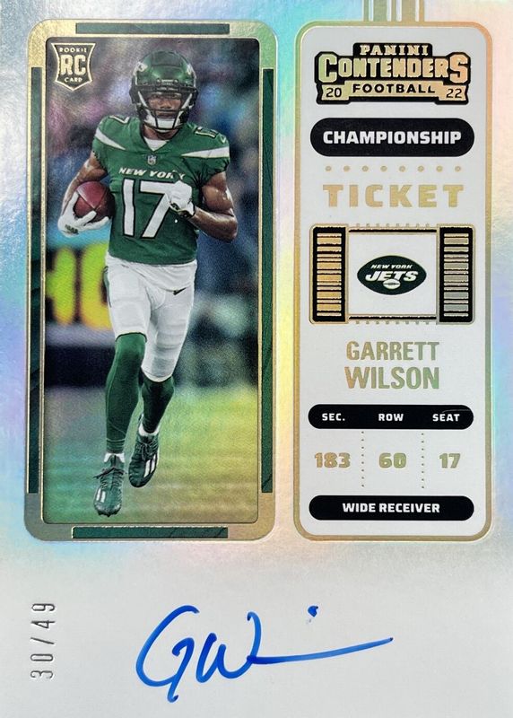 2022 Contenders Garrett Wilson Championship Ticket Rookie Auto RC #13/49 Jets