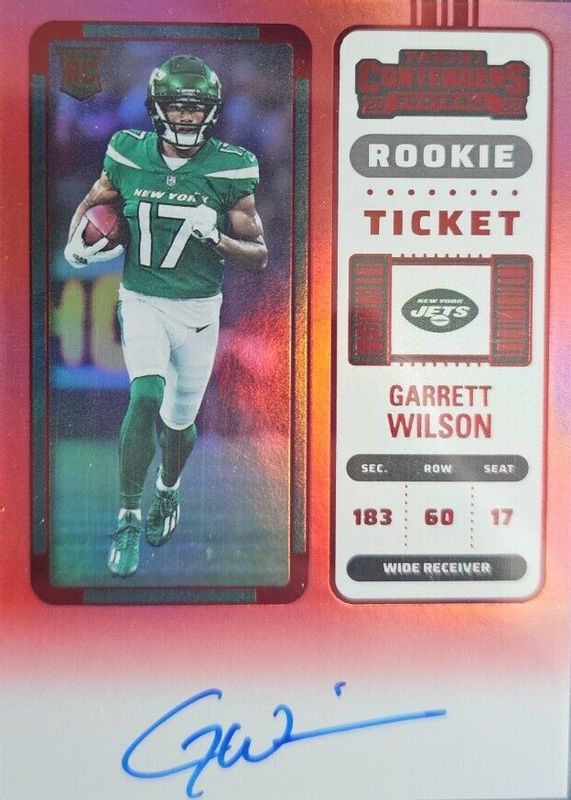 GARRETT WILSON 2022 CONTENDERS ROOKIE TICKET RED ZONE RC AUTO NY JETS