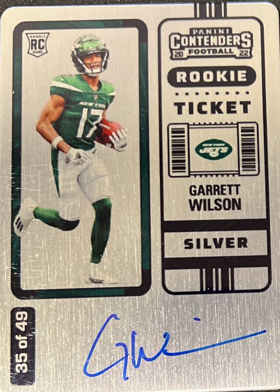 2022 Contenders GARRETT WILSON Rookie Ticket RPS Auto Silver Metal /49! JETS🔥🔥
