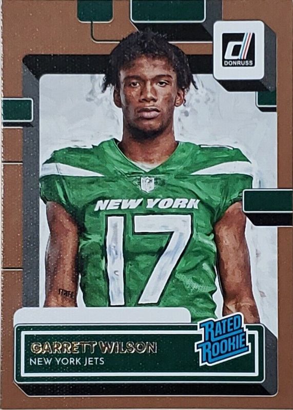 This card is 1 of 44 Garrett Wilson's card variations in the 2022 Donruss set being tracked by Sports Card Investor, including Base, Aqueous Test, Canvas, Jersey Number (/17), and No Name.