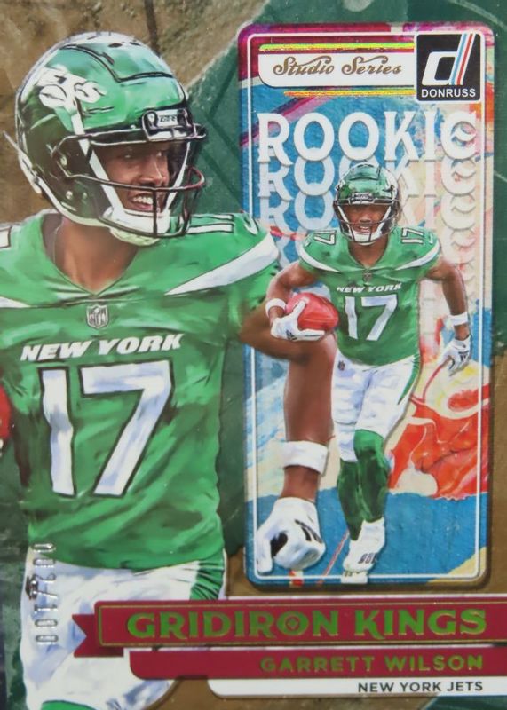 The Garrett Wilson 2022 Donruss #RGK-5 Rookie Gridiron Kings - Studio Series /100 card in Raw condition has not changed in price in the last 30 days and was last sold for $10.50 .