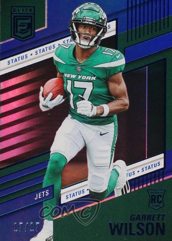 The Garrett Wilson 2022 Elite #118 Status (/17) Rookie card in Raw condition has not changed in price in the last 30 days and was last sold for $20.00 .