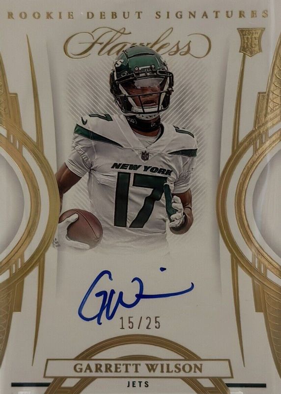 2022 Flawless /25 GARRETT WILSON Rookie Debut Signatures Gold Auto CP Jets Rc