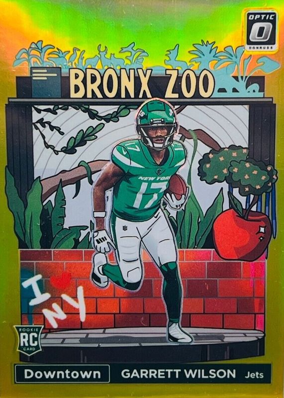 The Garrett Wilson 2022 Optic #DT-GW Downtown - Gold /10 Rookie card in Raw condition has not changed in price in the last 30 days and was last sold for $2,000.00 .