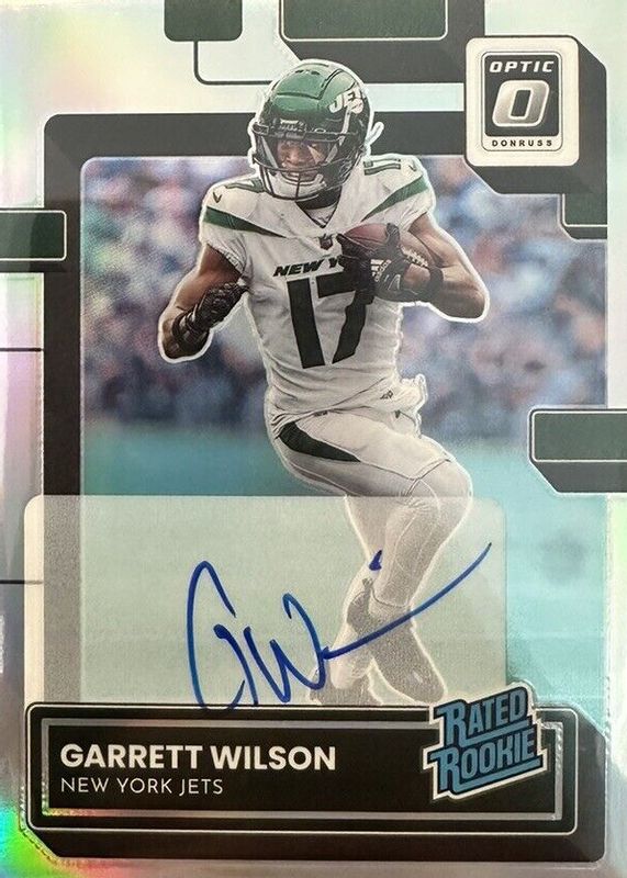 The Garrett Wilson 2022 Optic #206 Rated Rookie Autographs - Holo /125 card in Raw condition has not changed in price in the last 30 days and was last sold for $38.00 .