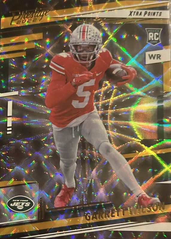 This card is 1 of 27 Garrett Wilson's card variations in the 2022 Prestige set being tracked by Sports Card Investor, including Base, Xtra Points Astral, Xtra Points Diamond, Xtra Points Dots, and Xtra Points Galaxy.