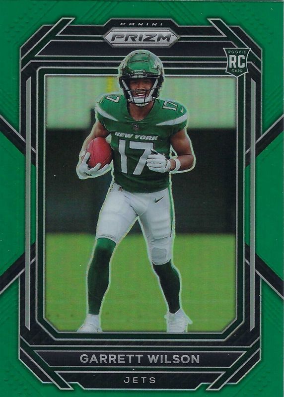The Garrett Wilson 2022 Prizm #309 Green Rookie card in Raw condition has moved down -$3.40 (-44.4%) in the last 30 days and was last sold for $4.25 .