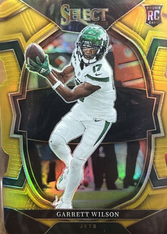 This card is 1 of 132 Garrett Wilson's card variations in the 2022 Select set being tracked by Sports Card Investor, including Concourse, Field Level, Suite Level, Concourse Black & Green Die-Cut, and Concourse Black & Red Die-Cut.