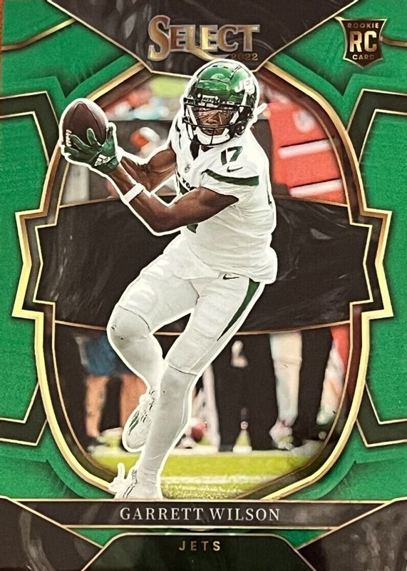 This card is 1 of 132 Garrett Wilson's card variations in the 2022 Select set being tracked by Sports Card Investor, including Concourse, Field Level, Suite Level, Concourse Black & Green Die-Cut, and Concourse Black & Red Die-Cut.