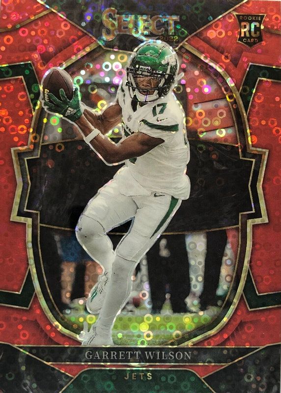 2022 Select Garrett Wilson Red Disco Prizm RC Concourse #29/49 Jets