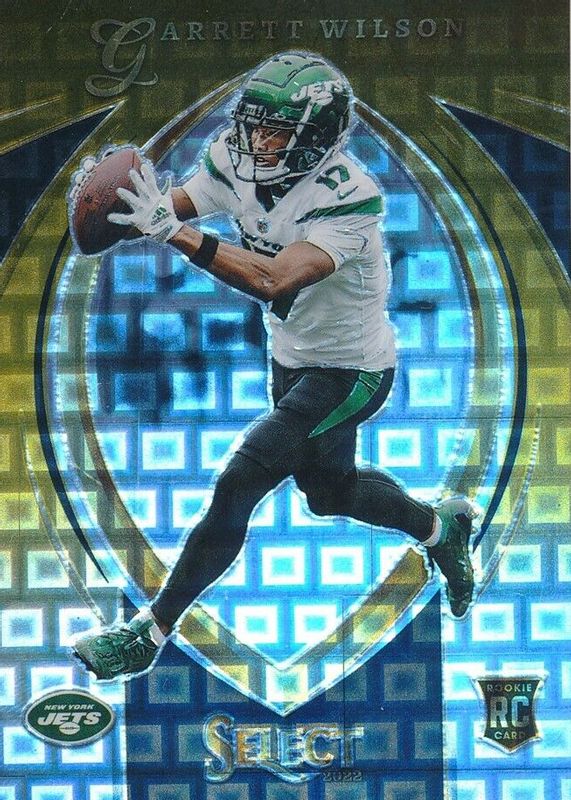 This card is 1 of 132 Garrett Wilson's card variations in the 2022 Select set being tracked by Sports Card Investor, including Concourse, Field Level, Suite Level, Concourse Black & Green Die-Cut, and Concourse Black & Red Die-Cut.