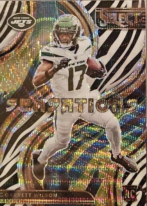 The Garrett Wilson 2022 Select #SEN-23 Sensations - Zebra /(SSP) Rookie card in Raw condition has not changed in price in the last 30 days and was last sold for $81.00 .