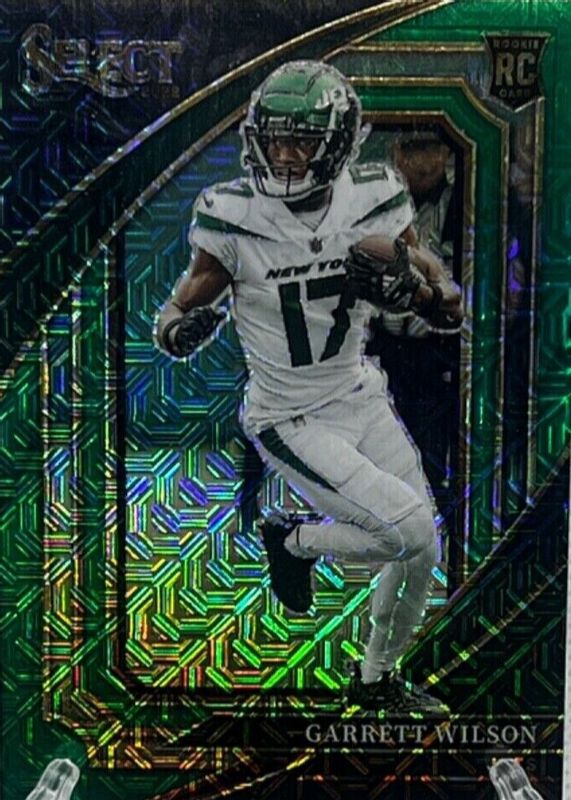 This card is 1 of 132 Garrett Wilson's card variations in the 2022 Select set being tracked by Sports Card Investor, including Concourse, Field Level, Suite Level, Concourse Black & Green Die-Cut, and Concourse Black & Red Die-Cut.