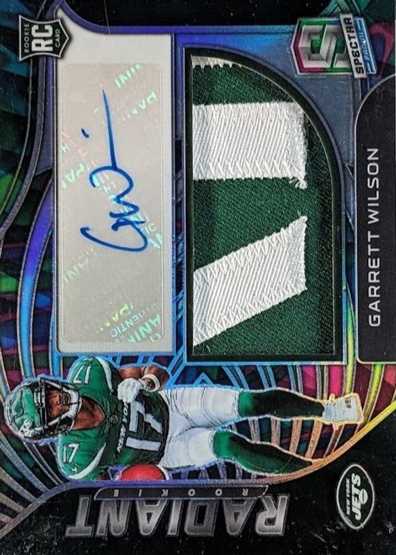 Garrett Wilson 2022 Spectra #RAD-GWI Radiant Rookie Patch Signatures - Neon Marble /4 RAW Price Guide