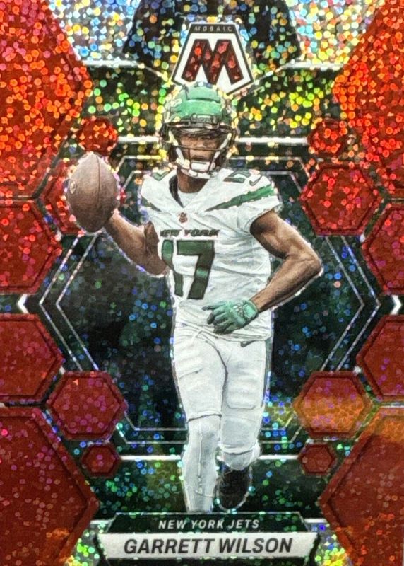 GARRETT WILSON 2023 MOSAIC FOOTBALL RED SPARKLE PRIZM JETS #75 Q2478