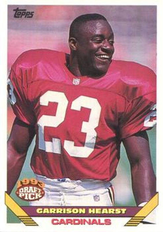 The Garrison Hearst 1993 Topps #385 Base Rookie card is 1 of 4 Garrison Hearst's card variations in the 1993 Topps set being tracked by Sports Card Investor, including #101 Base, #101 Gold, and #385 Gold.