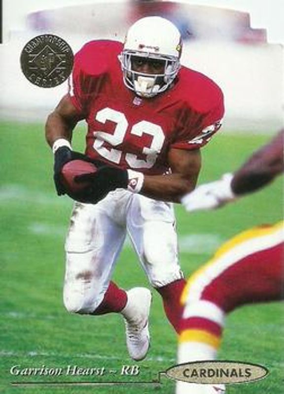 The Garrison Hearst 1995 SP Championship #50 Die-Cut card is 1 of 2 Garrison Hearst's card variations in the 1995 SP Championship set being tracked by Sports Card Investor, including Base.
