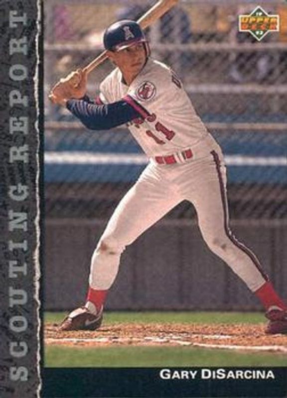 The Gary DiSarcina 1992 Upper Deck #SR7 Scouting Report card is 1 of 3 Gary DiSarcina's card variations in the 1992 Upper Deck set being tracked by Sports Card Investor, including Base, and Gold Hologram.