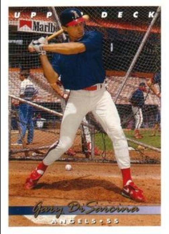 The Gary DiSarcina 1993 Upper Deck #230 Gold Hologram card is 1 of 2 Gary DiSarcina's card variations in the 1993 Upper Deck set being tracked by Sports Card Investor, including Base.