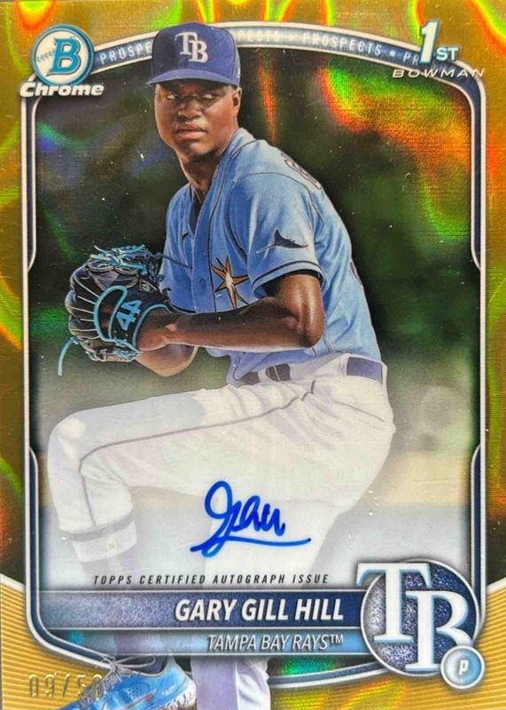 2025 Bowman Gary Gill Hill Chrome Auto Gold Lava Refractor 1st 50/50 Rays MLB