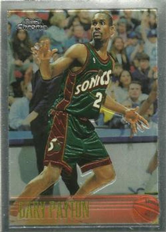 The Gary Payton 1996 Topps Chrome #212 Base card is 1 of 5 Gary Payton's card variations in the 1996 Topps Chrome set being tracked by Sports Card Investor, including #212 Refractor, #212R Refractor, #PF-20 Pro Files, and #16 Season's Best.