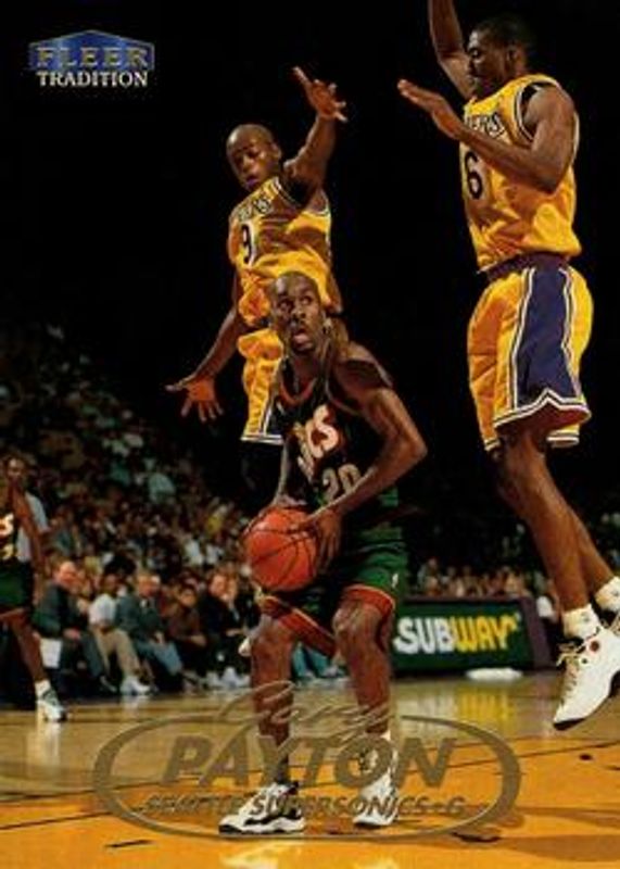 The Gary Payton 1998 Fleer Tradition #20 Base card is 1 of 4 Gary Payton's card variations in the 1998 Fleer Tradition set being tracked by Sports Card Investor, including Vintage '61, Classic '61 /61, and Electrifying.