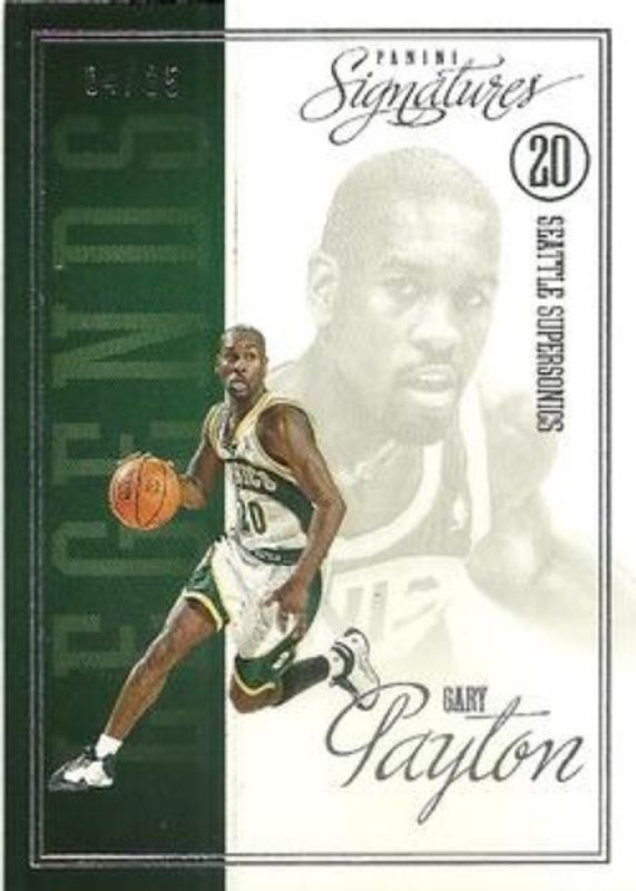 The Gary Payton 2012 Panini Signatures #38 Chase Legends /25 card is 1 of 42 Gary Payton's card variations in the 2012 Panini Signatures set being tracked by Sports Card Investor, including #120 Signatures Film Green, #120 Signatures Film Red, #185 Signatures Variations Platinum, #39 Chase Legends /25, and #40 Chase Legends /25.