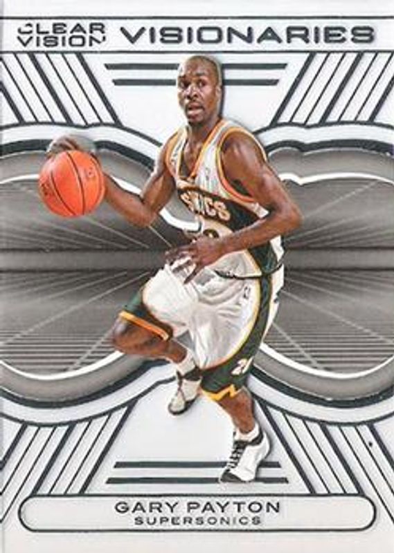 The Gary Payton 2015 Clear Vision #7 Visionaries card is 1 of 21 Gary Payton's card variations in the 2015 Clear Vision set being tracked by Sports Card Investor, including #125b Base, #125 Base, #125 Bronze, #125 Blue /149, and #125b Blue /149.