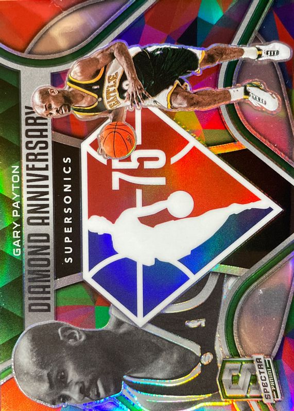2021 -22 Spectra Gary Payton 75th Diamond Anniversary Silver Prizm SP Case Hit