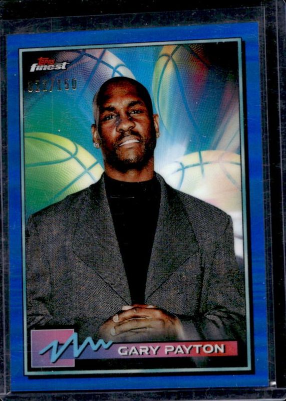 The Gary Payton 2021 Topps Finest #20 Blue /150 card is 1 of 23 Gary Payton's card variations in the 2021 Topps Finest set being tracked by Sports Card Investor, including Base, Refractor, Atomic /299, Purple /250, and Speckle /199.