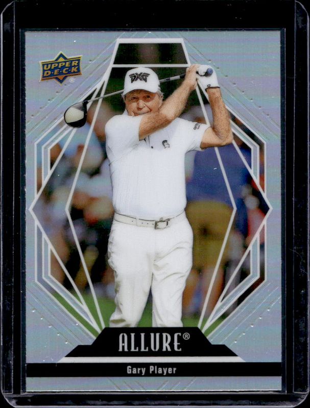 The Gary Player 2024 Upper Deck Portfolio #A-GP Allure card is 1 of 57 Gary Player's card variations in the 2024 Upper Deck Portfolio set being tracked by Sports Card Investor, including Base, Black & White Portrait, Color Portraits, Wire Photos, and Allure Black Rainbow Parallel.