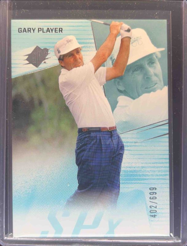 The Gary Player 2024 Upper Deck Portfolio #SPX-14 SPx /699 card is 1 of 57 Gary Player's card variations in the 2024 Upper Deck Portfolio set being tracked by Sports Card Investor, including Base, Black & White Portrait, Color Portraits, Wire Photos, and Allure.