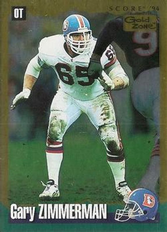 The Gary Zimmerman 1994 Score #183 Gold Zone card is 1 of 2 Gary Zimmerman's card variations in the 1994 Score set being tracked by Sports Card Investor, including Base.