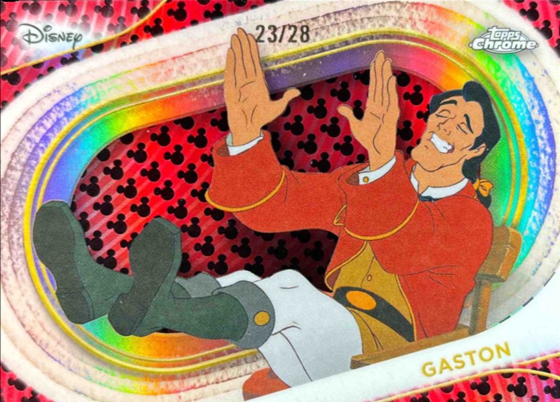 The Gaston 2025 Topps Chrome Disney #127 Mickey Mouse Logo Refractor /28 card is 1 of 72 Gaston's card variations in the 2025 Topps Chrome Disney set being tracked by Sports Card Investor, including #127 Base, #131 Base, #131 Mini Diamonds Refractor, #127 Mini Diamonds Refractor, and #131 Prism Refractor.