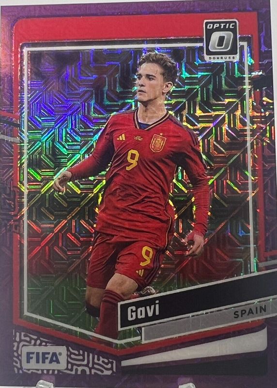 The Gavi 2023 Donruss #55 Optic - Purple Mojo /25 (National) card in Raw condition has not changed in price in the last 30 days and was last sold for $5.50 .
