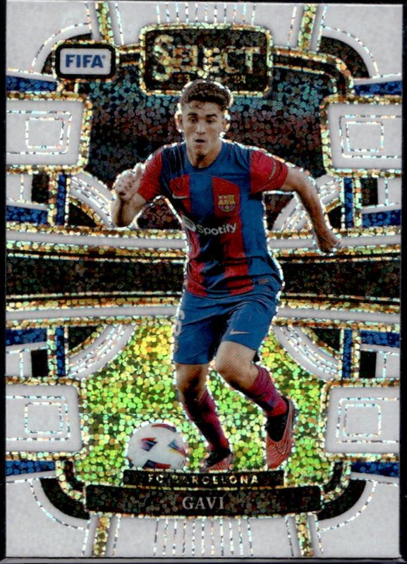 The Gavi 2023 Select FIFA #24 White Sparkle card is 1 of 85 Gavi's card variations in the 2023 Select FIFA set being tracked by Sports Card Investor, including #237 Base, #24 Base, #199 Base, #237 Blue, and #24 Blue.