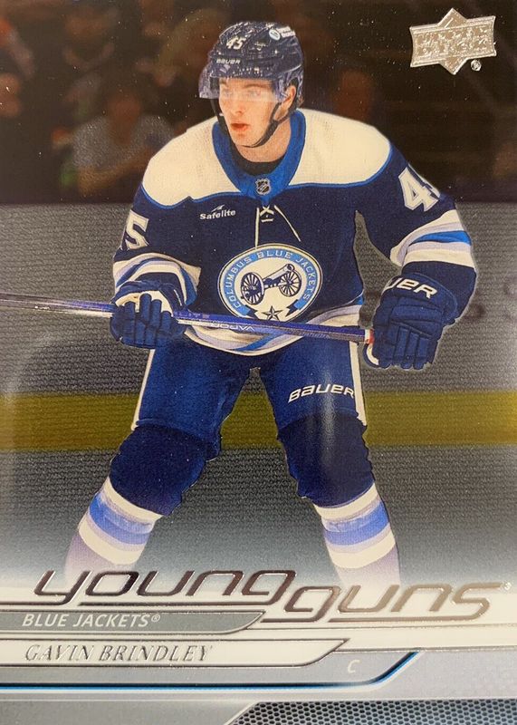 This card is 1 of 8 Gavin Brindley's card variations in the 2024 Upper Deck set being tracked by Sports Card Investor, including Young Guns Base, Young Guns - Outburst Silver, Young Guns - Deluxe /250, Young Guns - UD Exclusives /100, and Young Guns - Outburst Red /25.